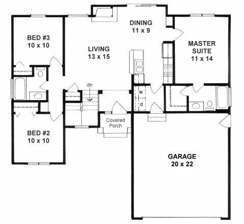 3-Bedroom Ranch House Plan — 1,039 Sq Ft (Plan 1039)