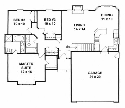 Ranch style small house plan w/ Master Suite