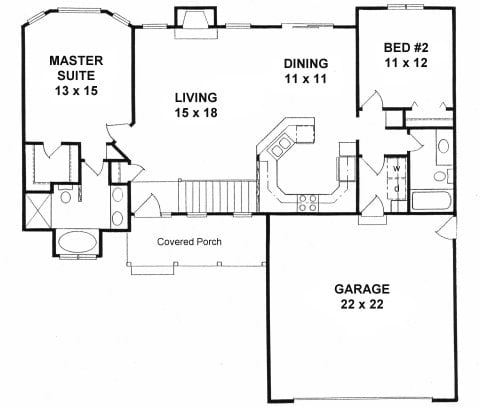 Ranch style small house plan 2-bedroom split