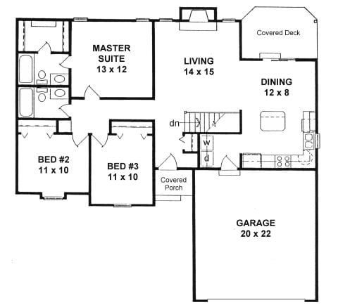 - Plan #9802 Bed 2 bath Ranch style starter home — 998 sq ft
