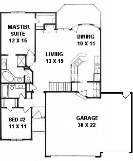 - Plan #9802 Bed 2 bath Ranch style starter home — 998 sq ft