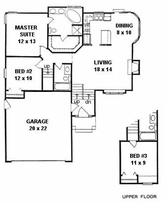 - Plan #12253 bedroom Quad level home — 1225 sq ft