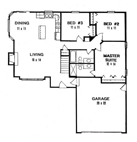 - Plan #1039Split 3 Bedroom Ranch with 2-Car Garage — 1039 sq ft