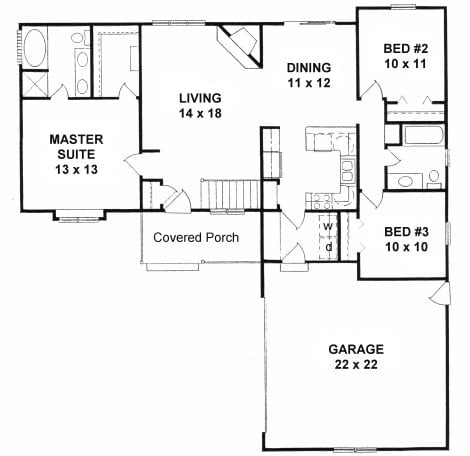- Plan #1091Small house plan with Great room — 1091 sq ft