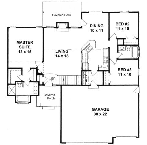 - Plan #1108Ranch with 3 (split) bedrooms and 2 baths — 1108 sq ft