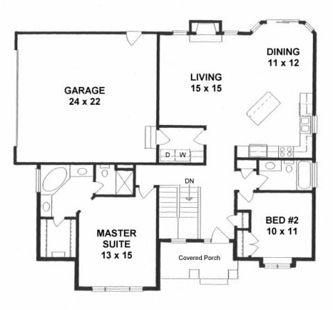 - Plan #1162Ranch style small house plan w/ Master Suite — 1162 sq ft