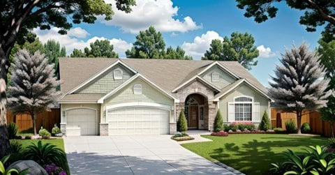 split-bedroom narrow lot Ranch w/ Walk-in pantry, 3-Car Garage and Heatrthroom