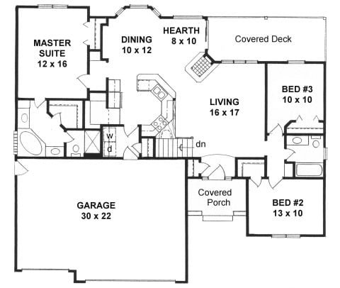 - Plan #1254 2 bedroom Ranch w/ 10' ceilings and 3-car Garage — 1254 sq ft