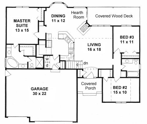 - Plan #13673 bedroom narrow lot Ranch w/ open floor plan — 1367 sq ft