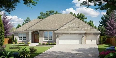 - Plan #13602 bedroom Cottage w/ Side Garage — 1360 sq ft