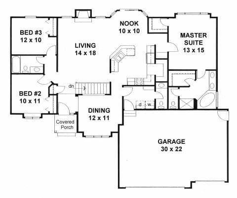 - Plan #13673 bedroom narrow lot Ranch w/ open floor plan — 1367 sq ft