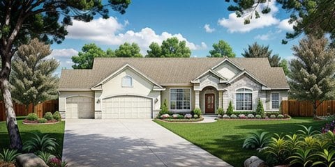 - Plan #13872 bedroom "open floor plan" Ranch w/ Walk-in Pantry and 3 car garage — 1387 sq ft