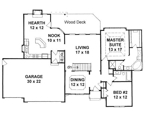 - Plan #1388 3 bedroom Ranch w/ Master Suite and stair landing exit — 1388 sq ft