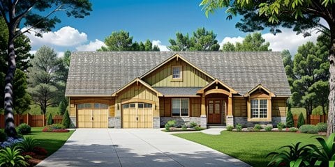 - Plan #13922 bedroom Ranch with 3 Car Garage, big covered deck — 1392 sq ft