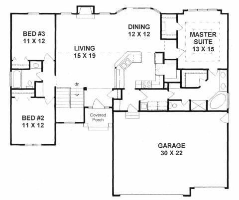 - Plan #14103 bedroom Country Style Ranch — 1410 sq ft
