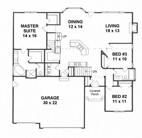 - Plan #14403 cluster-bedroom Ranch w/ Country Kitchen — 1440 sq ft