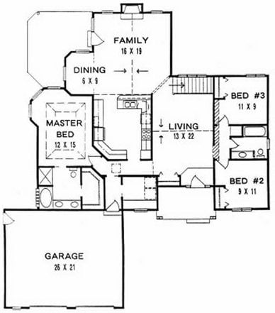 - Plan #15083 bedroom Ranch w/ Bay windows, Island Kitchen Bar and 3 car garage — 1508 sq ft