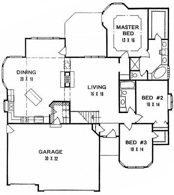 - Plan #15853 bedroom Ranch, home office and 3 Car Garage — 1585 sq ft