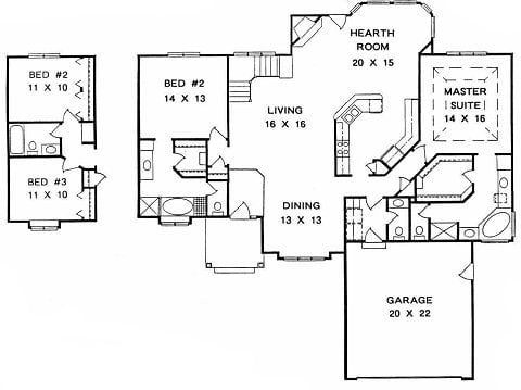 - Plan #16723 bedroom Ranch w/ angled walls and 3-Car Garage — 1672 sq ft
