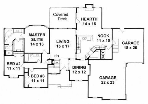 - Plan #16723 bedroom Ranch w/ angled walls and 3-Car Garage — 1672 sq ft