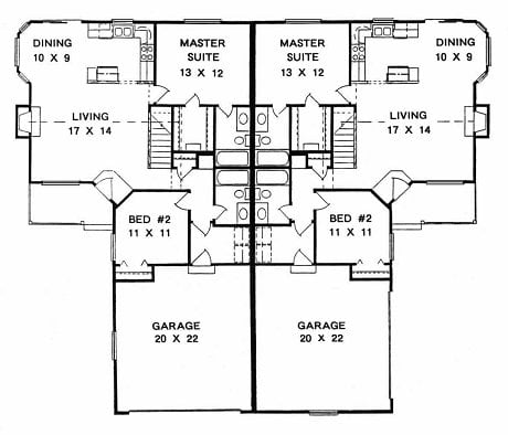 Ranch Style Duplex House Plan