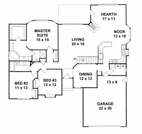 - Plan #20023 bedroom Ranch w/ Walk-in pantry, Hearth room and 3-Car — 2002 sq ft