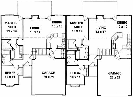 - Plan #2062Duplex Ranch Style Plan — 2062 sq ft