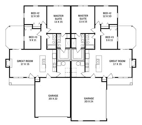 - Plan #2176Duplex for small lots — 2176 sq ft