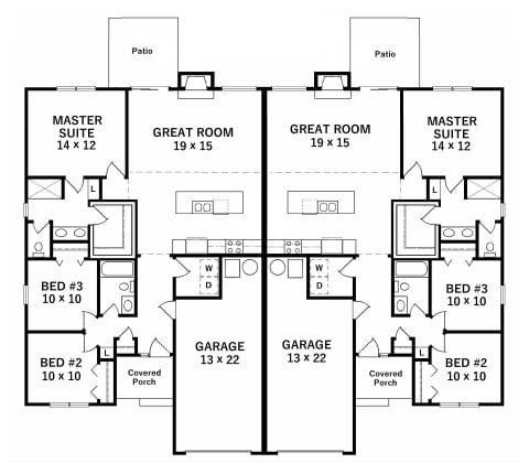 - Plan #25723 bedroom duplex with 3 car garages — 2572 sq ft